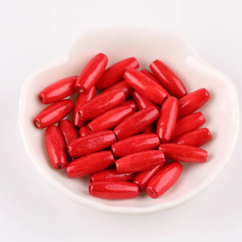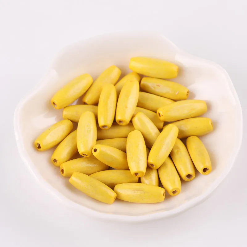 50Pcs 22*8mm Colored Wooden Beads – Natural Olive Shape Loose Wood Beads for Jewelry Making & Macrame