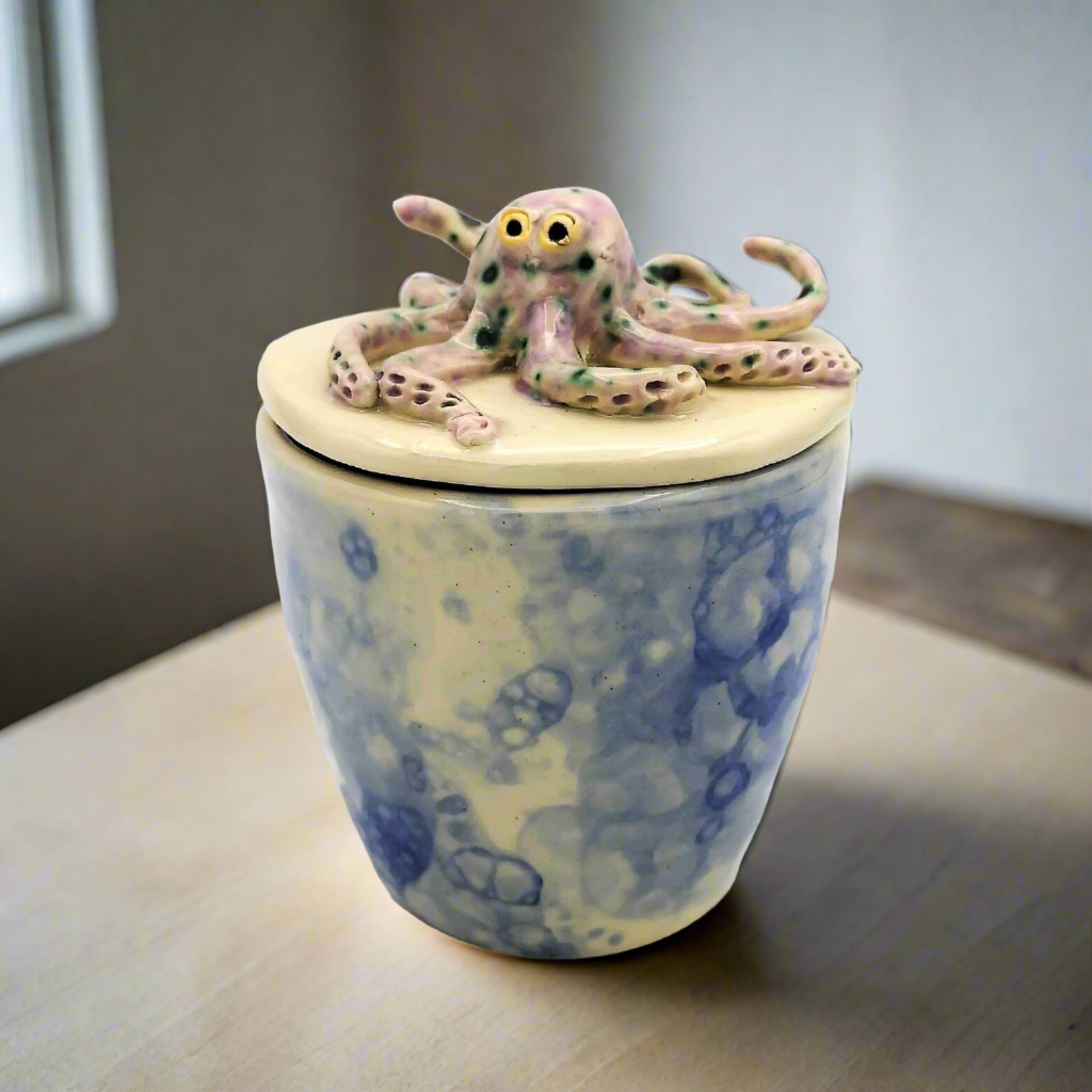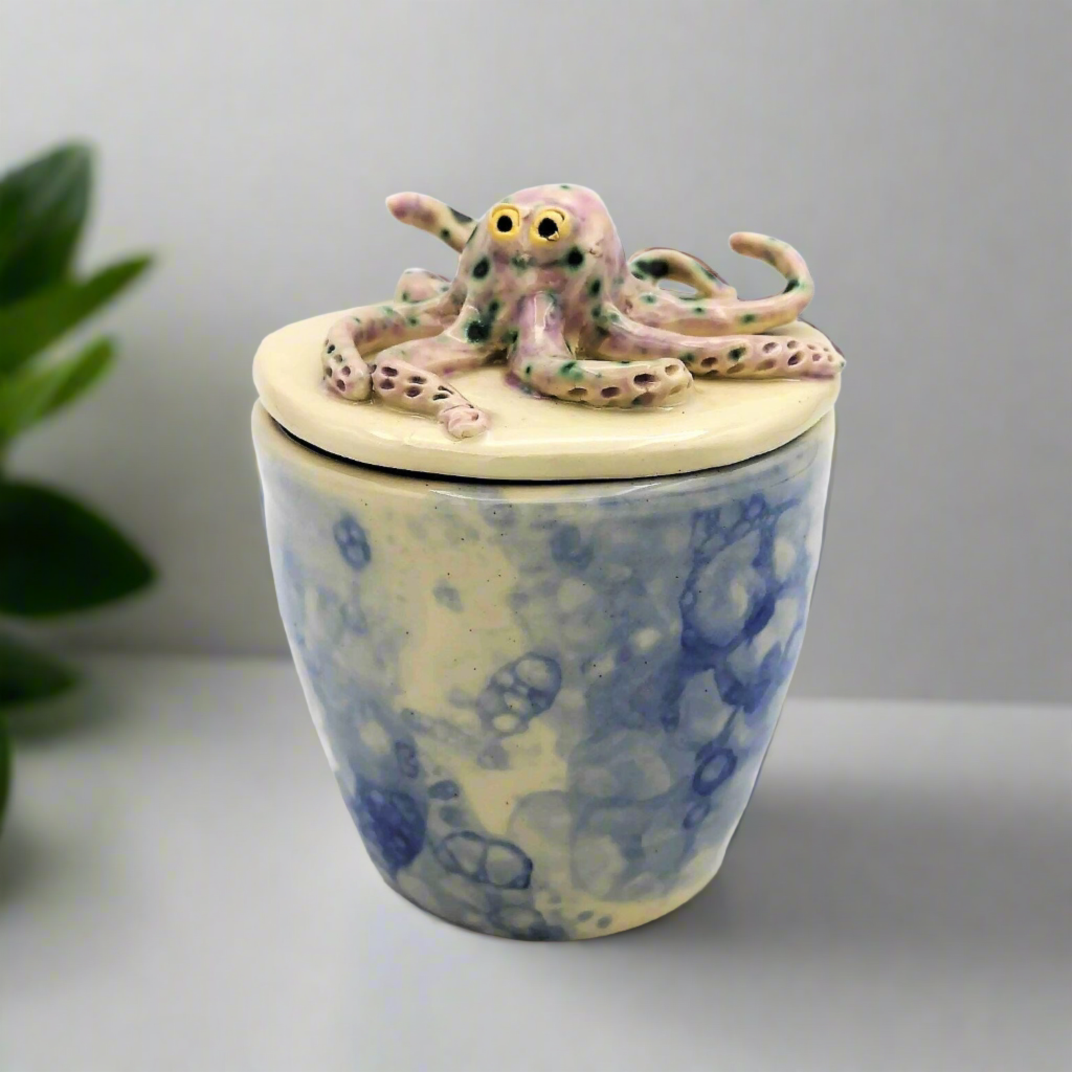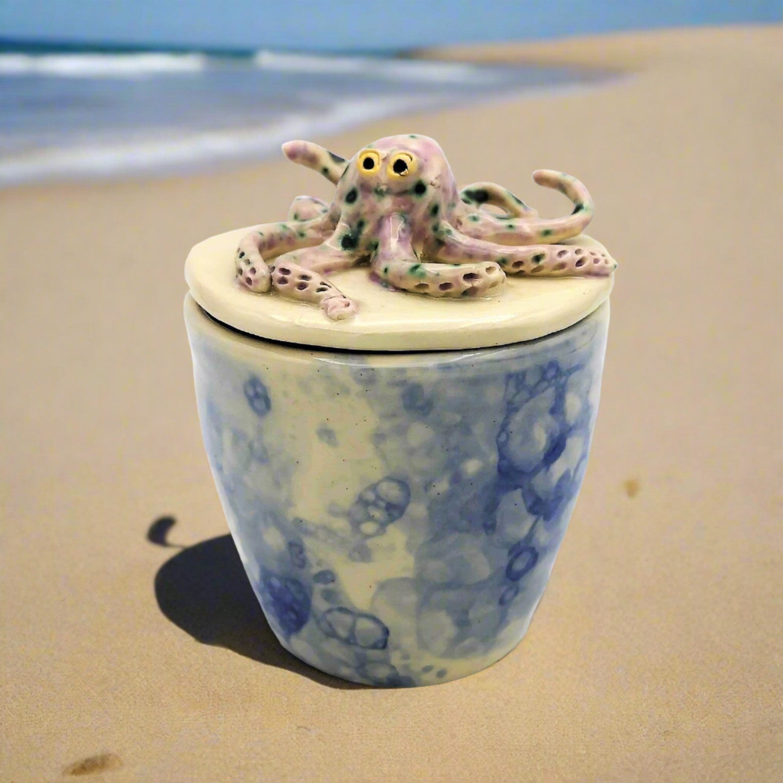 ¡Este llamativo azucarero de cerámica hecho a mano con tapa es versátil y totalmente único! Perfecto como regalo único de inauguración de la primera casa, este frasco de cerámica con tapa quedaría genial en la decoración del hogar costero. Este azucarero también se puede utilizar como salero, tarro de galletas o tarro de ginjer moderno, ya sea en interiores o exteriores. Esta Olla de Barro también se puede utilizar como pieza decorativa y puedes elegir entre un diseño de pulpo o percebe. Está hecho de gres, ha sido cocido a alta temperatura y mantendrá su color intenso.