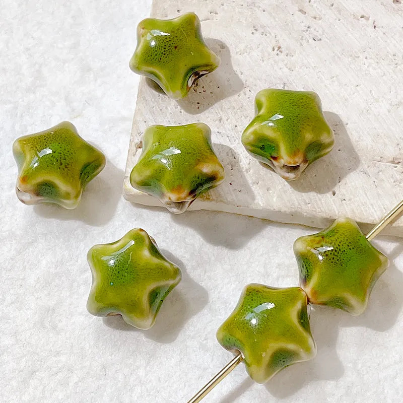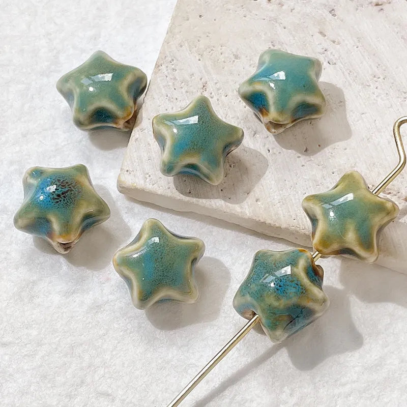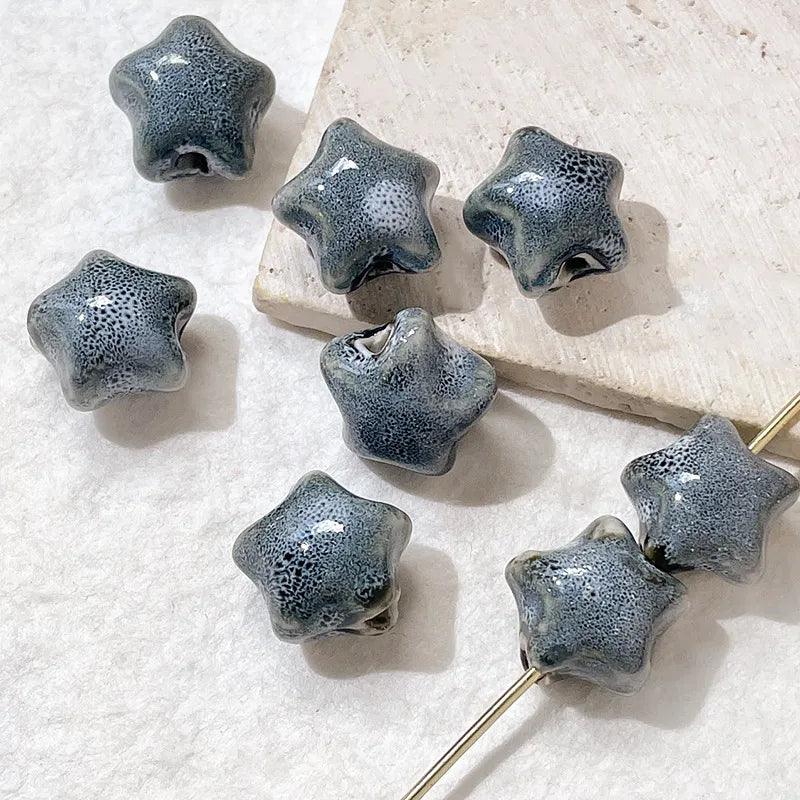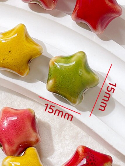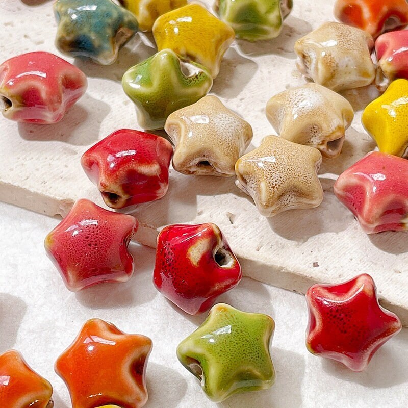 🌟 1/10Pc 15mm Star Ceramic Beads – Glazed Clay Beads for Crafts & Jewelry Making 🌟