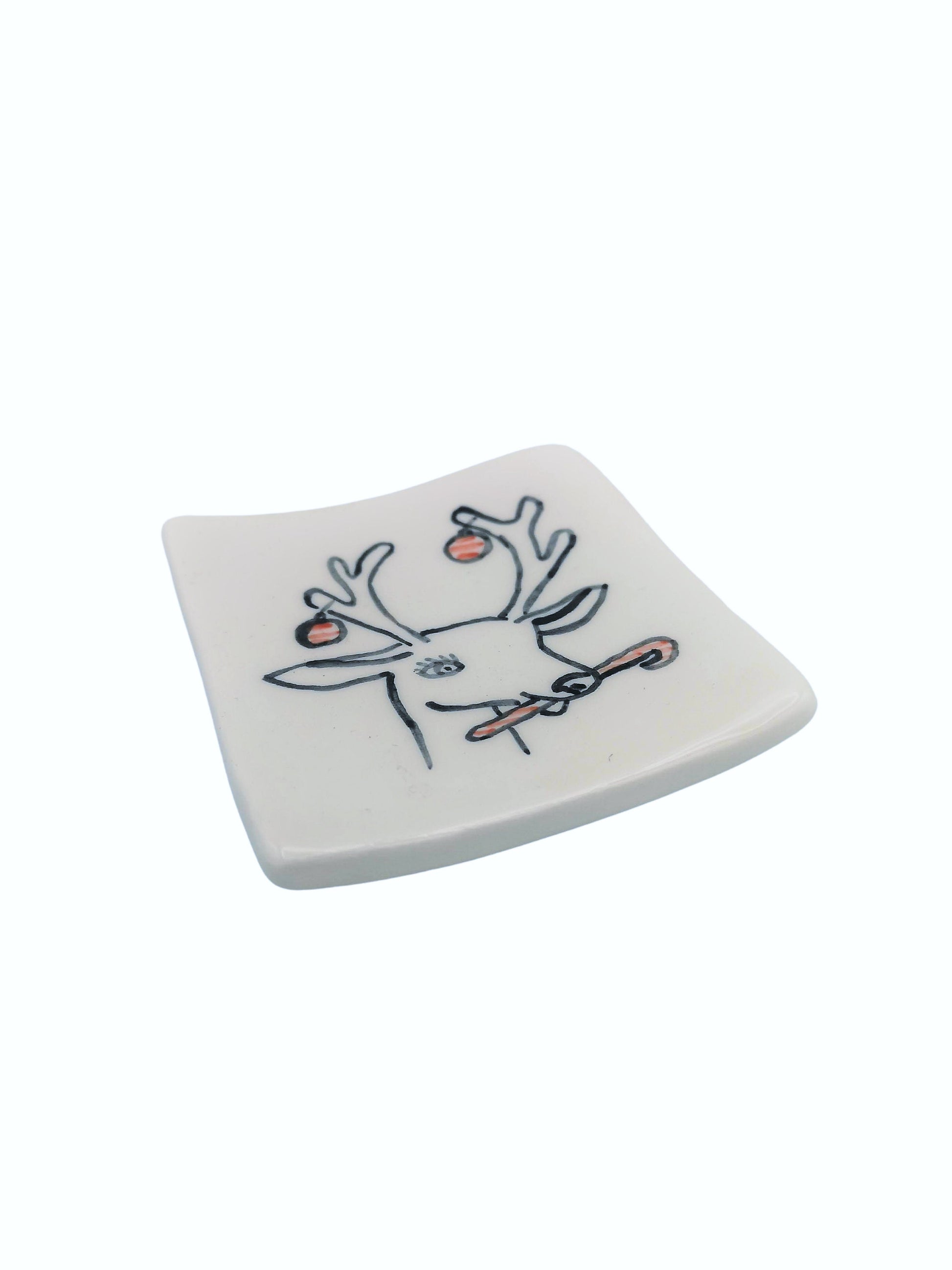 1Pc Handmade Ceramic Trinket Dish With Hand Painted Santa Claus, Holly or Reindeer, Candle Holder, Square Clay Ring Holder Best Gift For Her