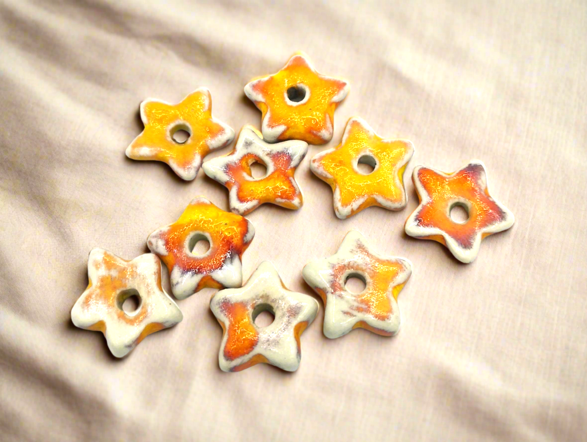 9Pc 15mm Orange Tiny Star Beads | Handmade Ceramic Macrame Beads