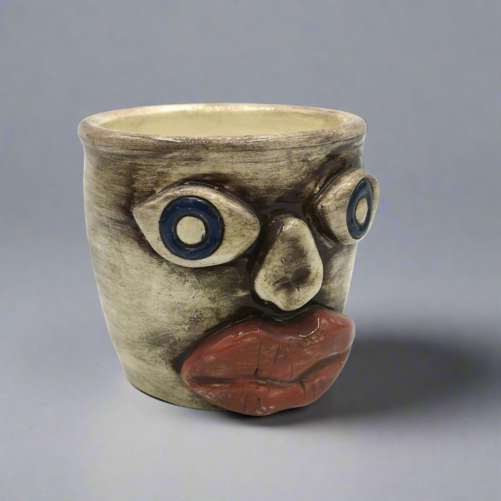 Handcrafted Ceramic Face Mug with Bold Features – Versatile as Cache Pot or Pencil Holder