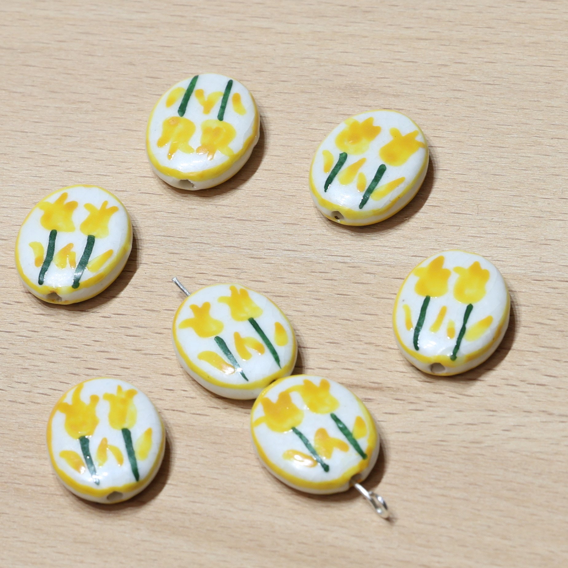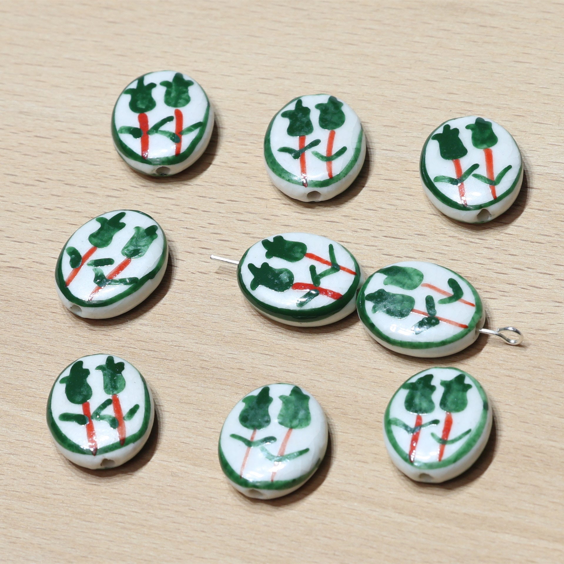 Set of 10 Hand-Painted Ceramic Oval Beads - Macrame Craft Supplies