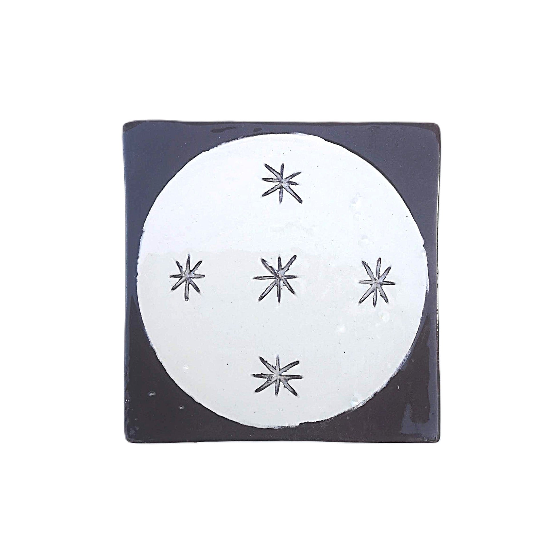 Hand Painted Portuguese Ceramic Art Tile – Small Art Deco Backsplash Tile with Moon Pattern