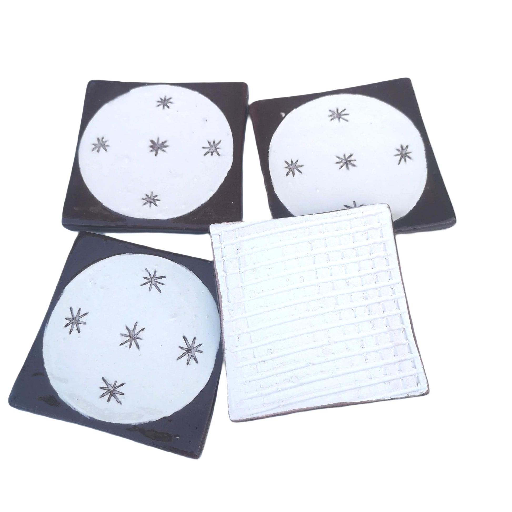 🌙 Hand Painted Moon Tile – This small ceramic art tile is hand-painted with a beautiful moon pattern in brown and beige tones, making it perfect for use as an art deco backsplash tile, ceramic wall tile, or even a mosaic tile. Ideal for kitchens, bathrooms, or as a stunning piece in any room, this tile brings rustic elegance to your space.