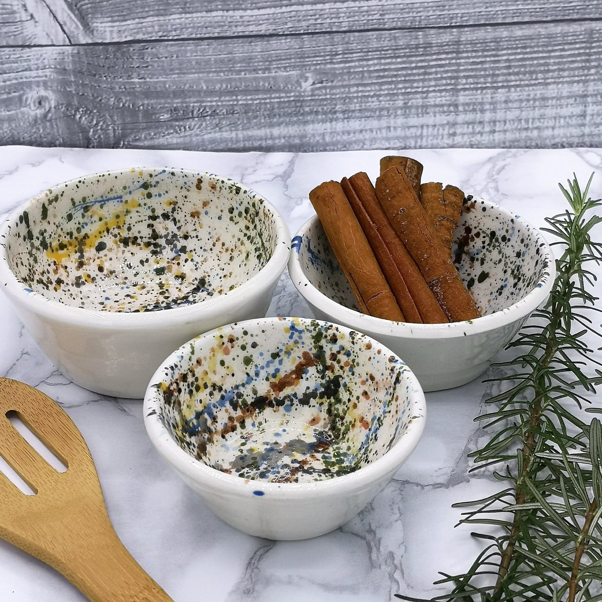 Add vibrant charm to your dining table with our Handmade Ceramic Bowl Set of 3. Perfect for serving sauces, starters, snacks, or simply as a beautiful decorative accent, these colorful bowls bring a unique touch of artistry to your home. Each set includes three different sizes, handcrafted with care, making them perfect as a housewarming gift or for any special occasion.
