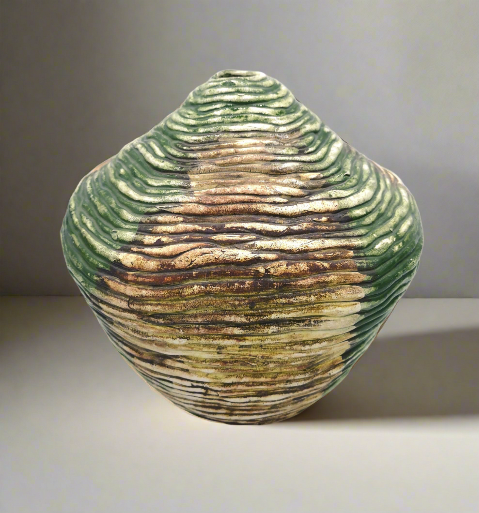 Introducing our 🌟 Handmade Ceramic Bud Vase 🌟, an extra-large, eye-catching ceramic sculpture that adds a touch of rustic elegance to any space. This unique vase is perfect as a wedding gift, a Christmas gift for mom from daughter, or a 9th-anniversary gift for a wife. Its green and brown colors and textured design make it a standout piece for any home decor, whether used indoors or outdoors.
