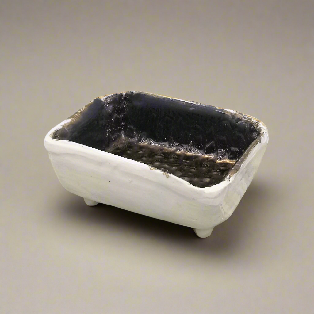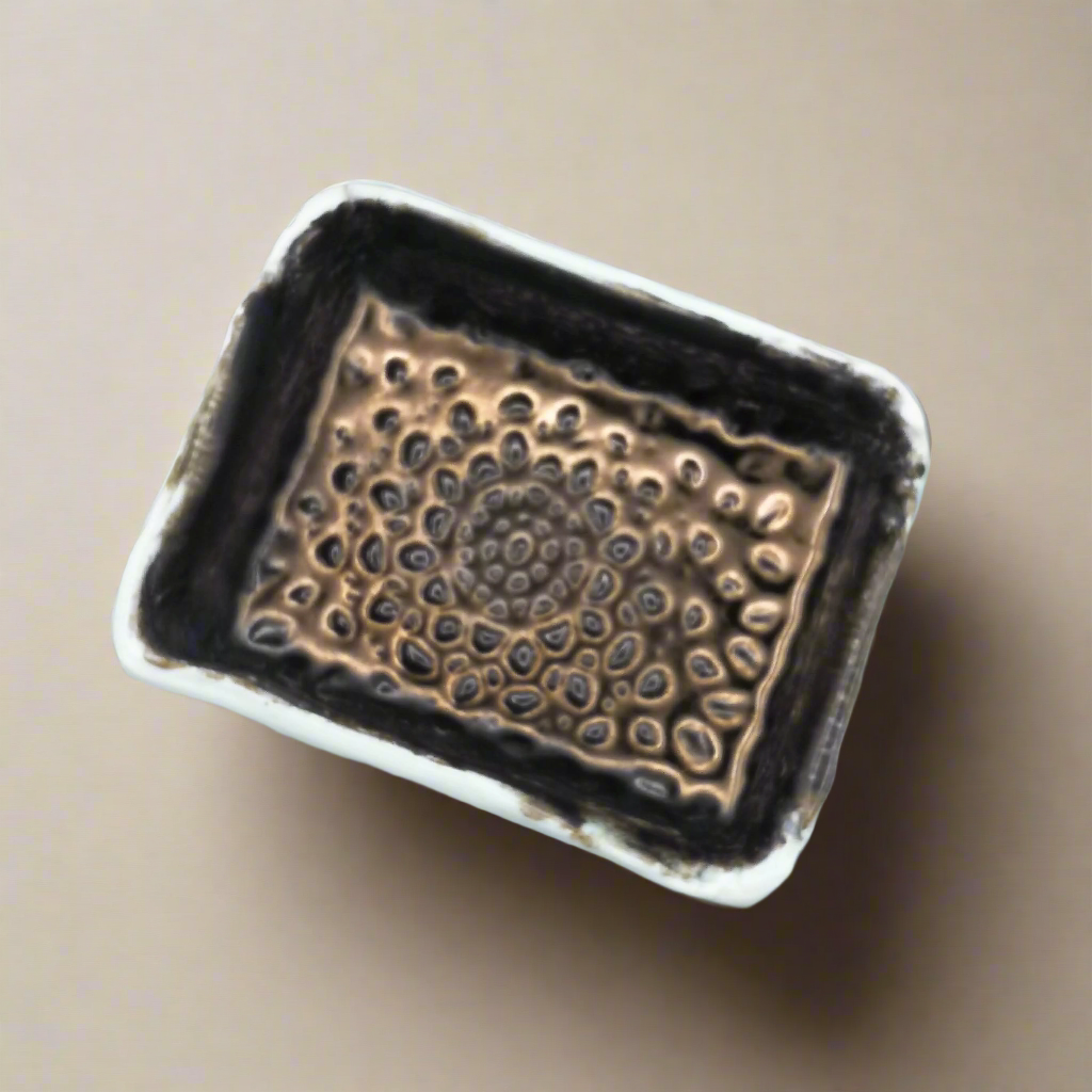 Add an elegant and rustic touch to your home with this handmade ceramic decorative bowl with feet. Featuring a beige exterior and a golden interior with a lace texture, this square trinket dish is both functional and beautiful. Perfect as a key bowl, trinket holder, or serving bowl, it makes a thoughtful gift for special occasions like Mother’s Day, birthdays, or anniversaries.