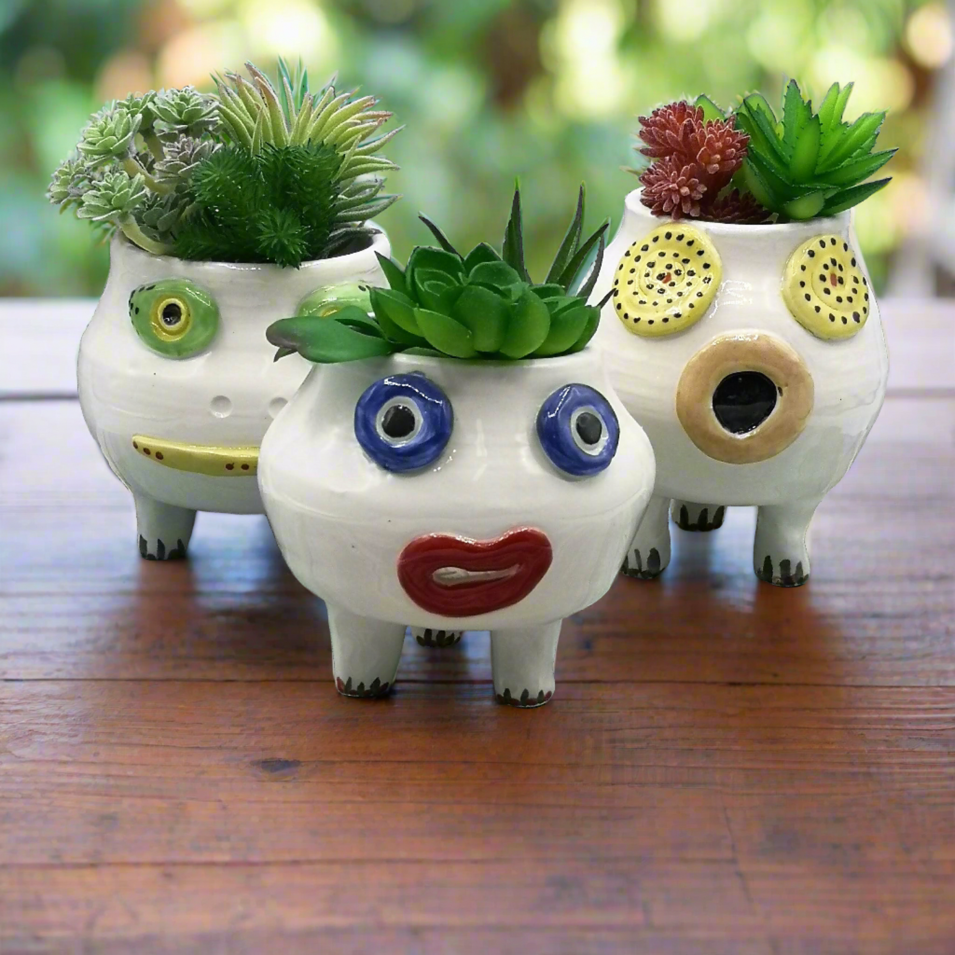 Handmade Ceramic Face Planter – Cute Head Vase for Succulents & Cacti