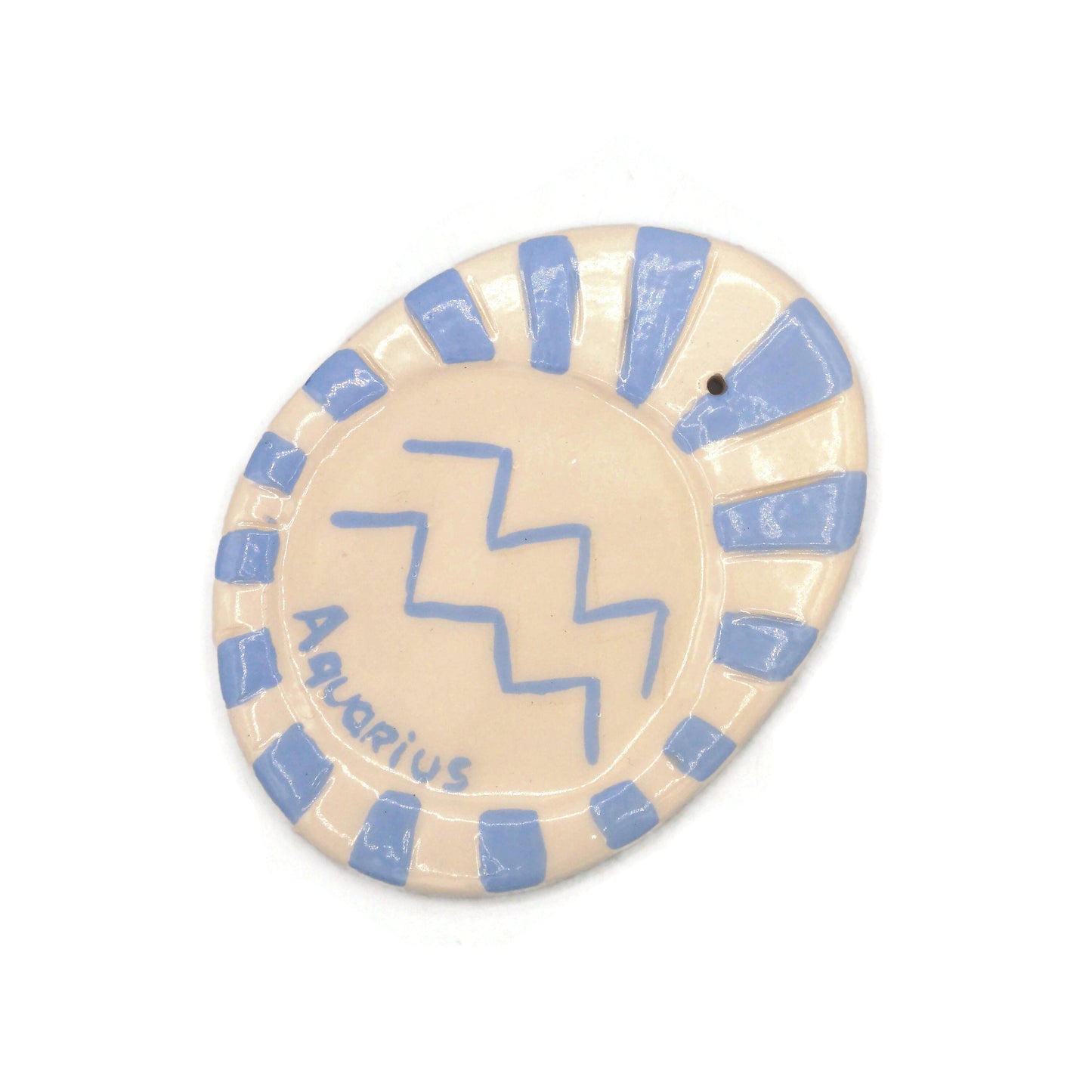 Looking for a unique and practical ceramic gift for people with the Aquarius star sign? This contemporary ceramic zodiac incense holder is just what you need. It can be used as an incense stick burner, candle holder, jewelry holder, soap dish, condiment dish, teabag holder, or votive holder. Handmade and hand-painted with care, this stick incense burner is a perfect gift for a mom's birthday from her daughter or as a 9th-anniversary gift!