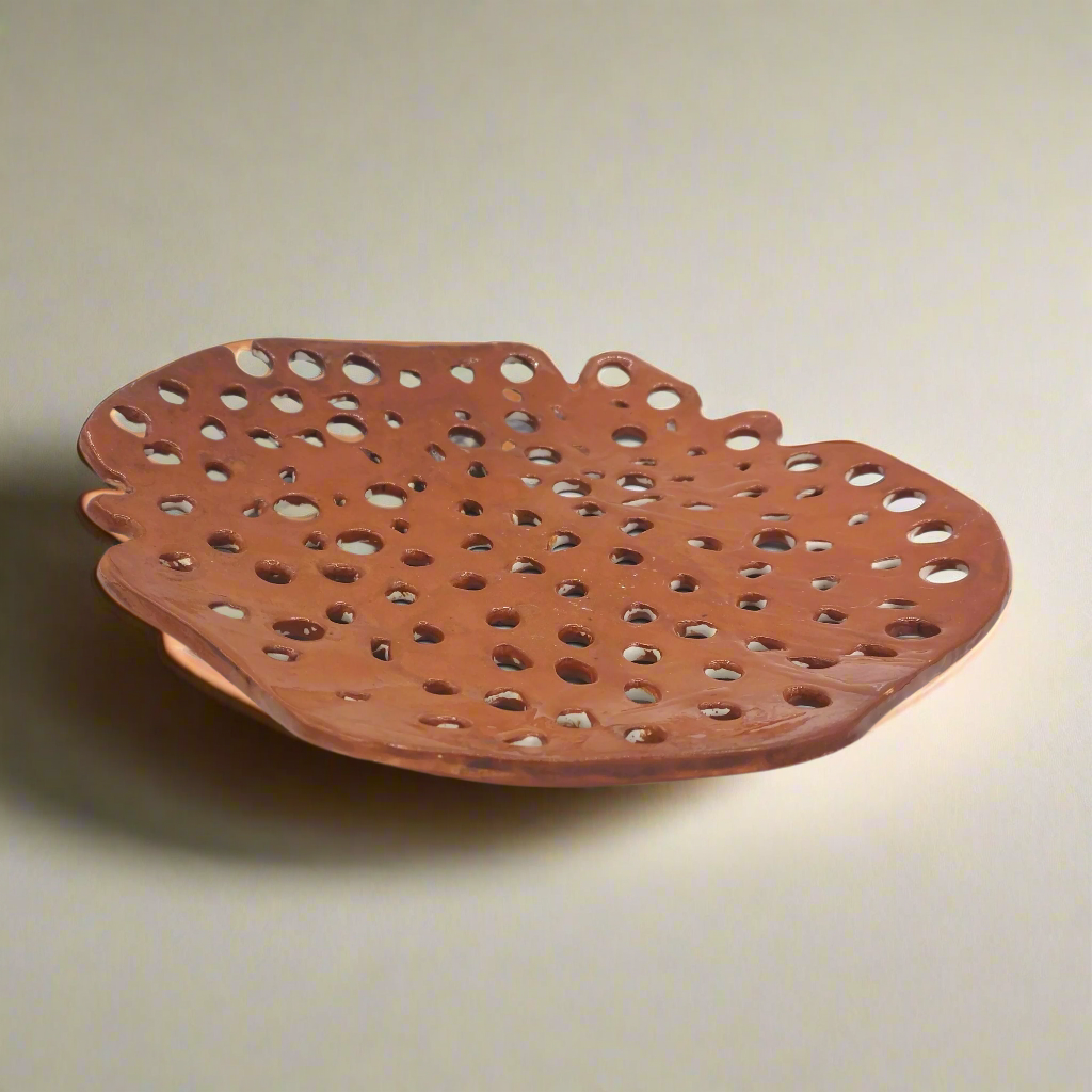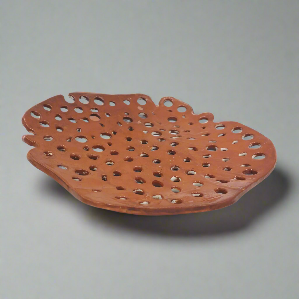 🍽️ Bring modern elegance to your kitchen with this stunning handmade ceramic plate! Featuring a reddish, hand-painted design and unique holes, this large decorative bowl makes a bold statement as a centerpiece for your table. Perfect as a fruit bowl or to display as wall decor, this piece adds a pop of color to your dining space, creating a beautiful and inviting atmosphere.