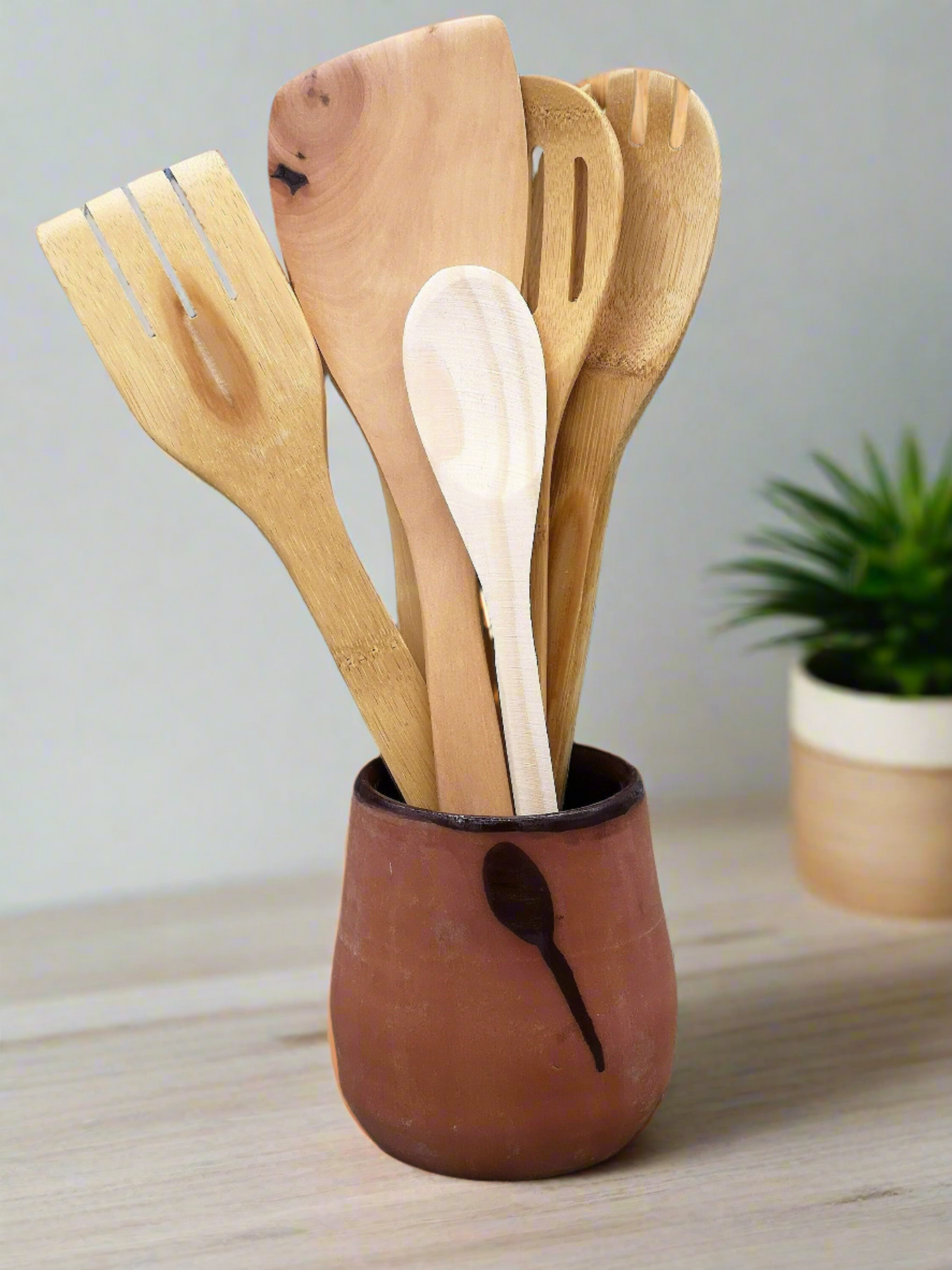 • Each utensil holder is handmade, making every piece unique and full of character.