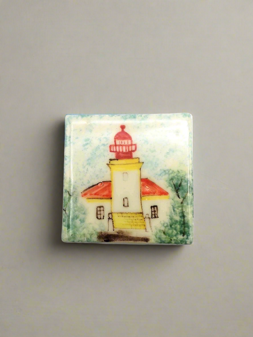 Hand-Painted Ceramic Lighthouse Tile – Small Wall Art & Decorative Mosaic Tile