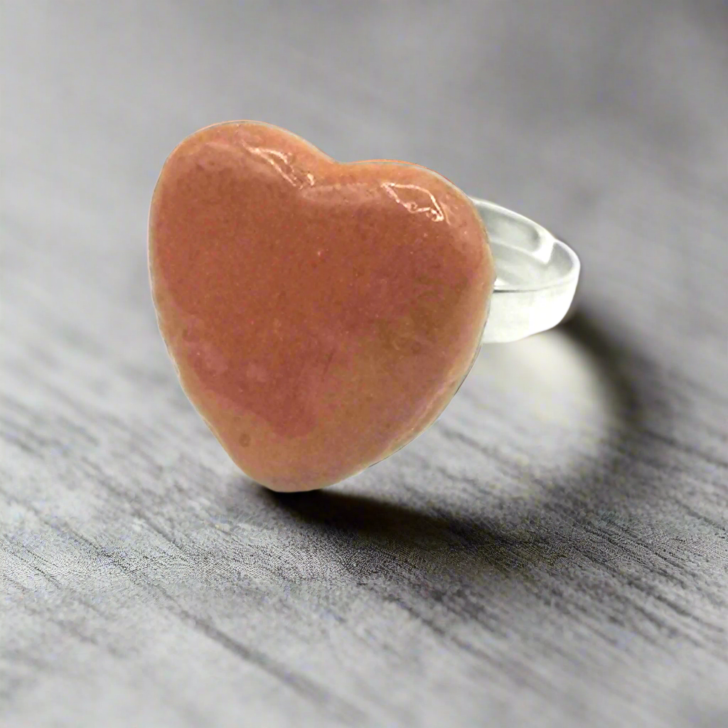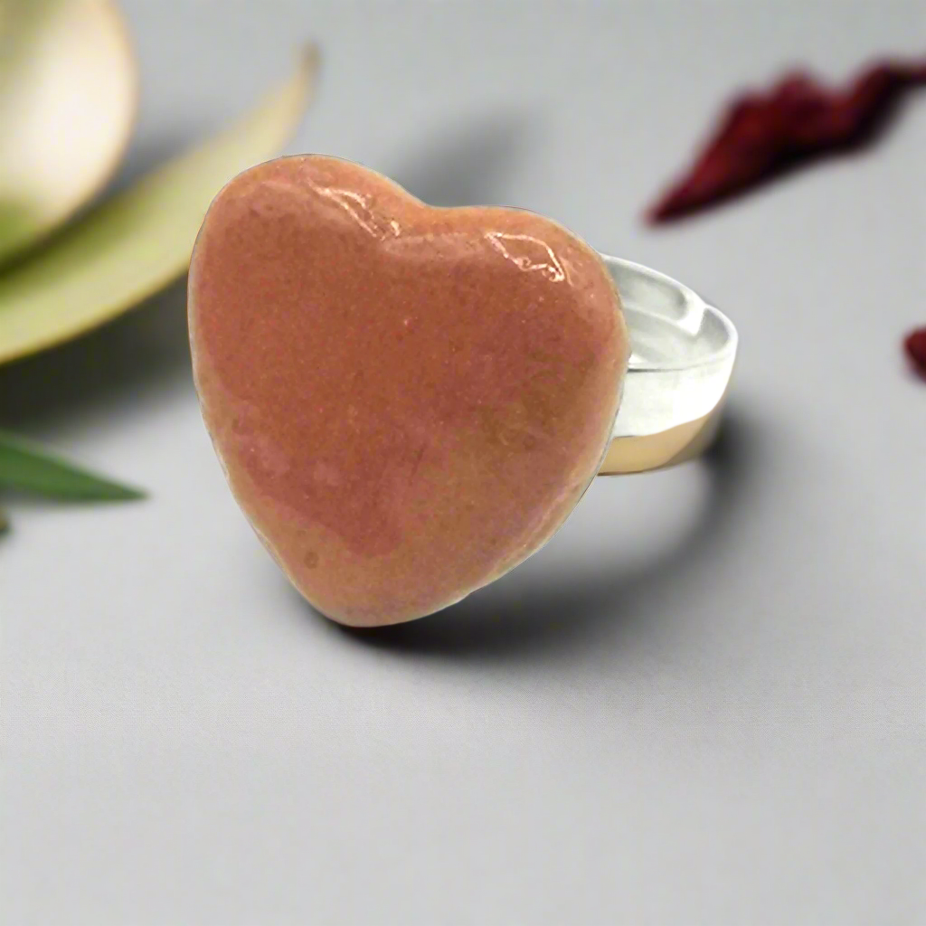 Handmade Terracotta Heart Ring – Adjustable Stainless Steel Statement Jewelry