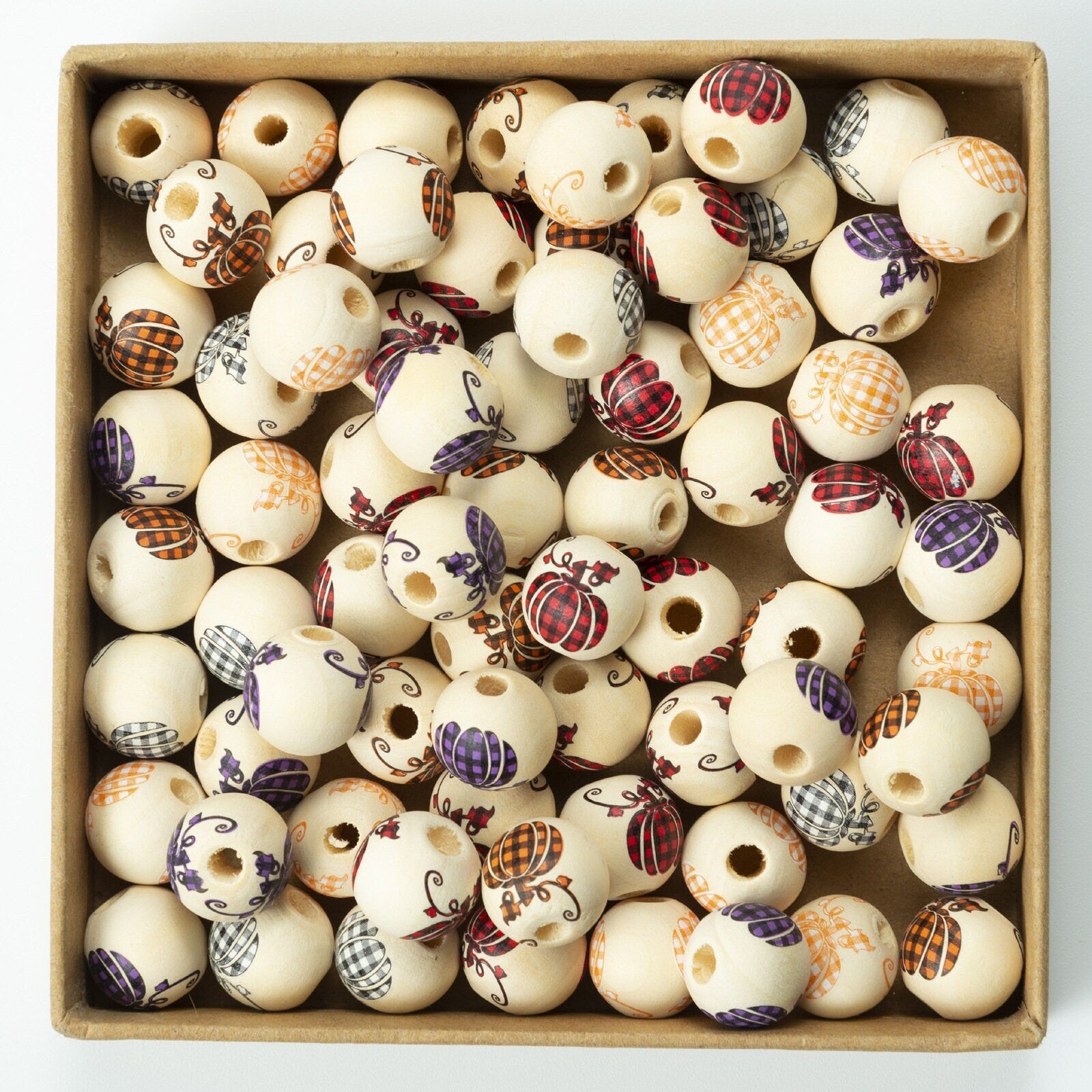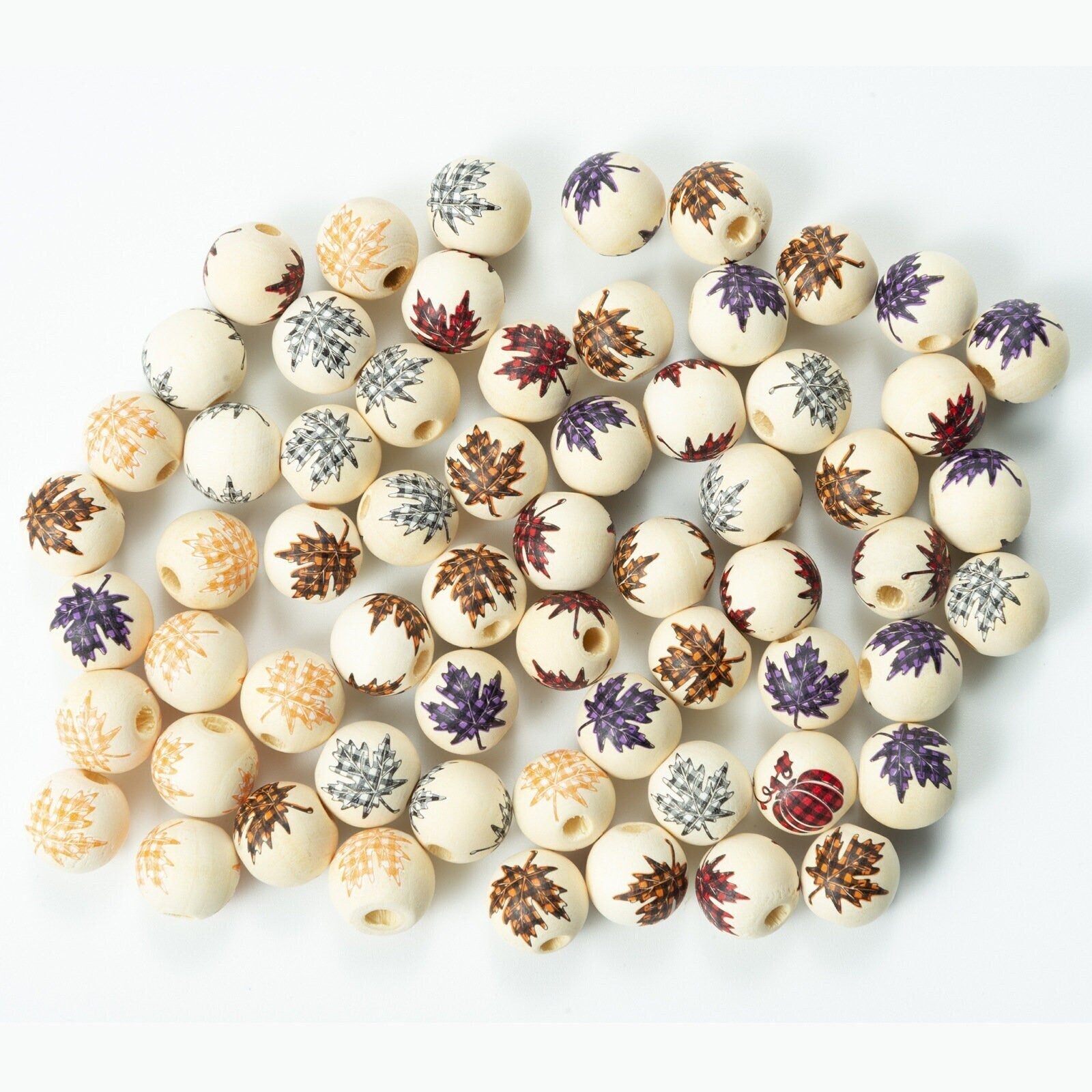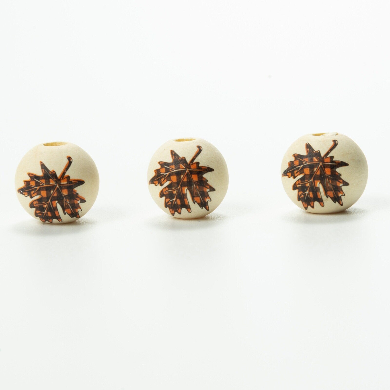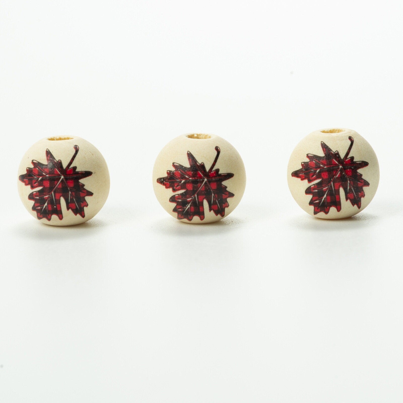 🌟 Made from premium wood with a durable painted finish. Each bead features a stunning maple leaf print, perfect for fall-themed crafts.