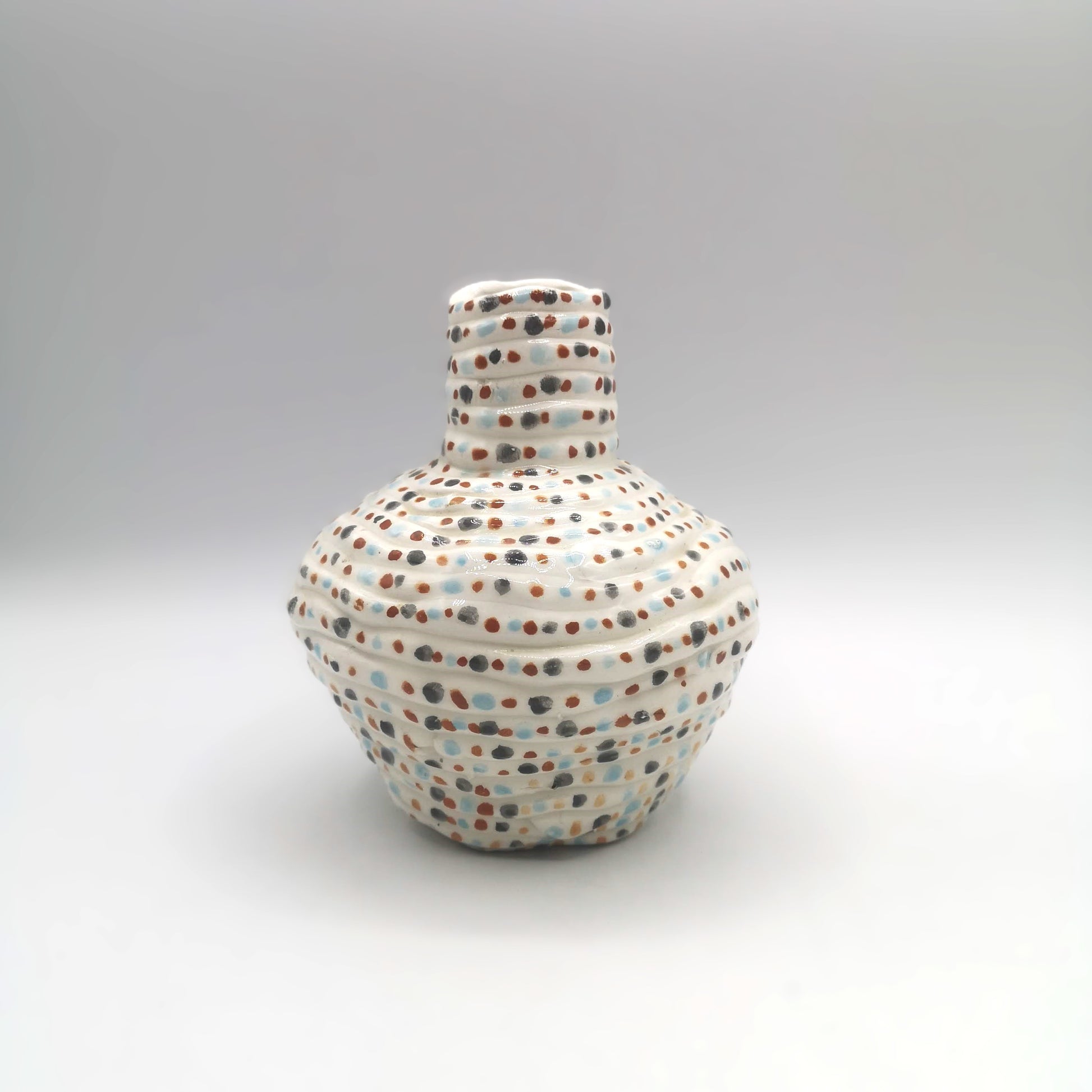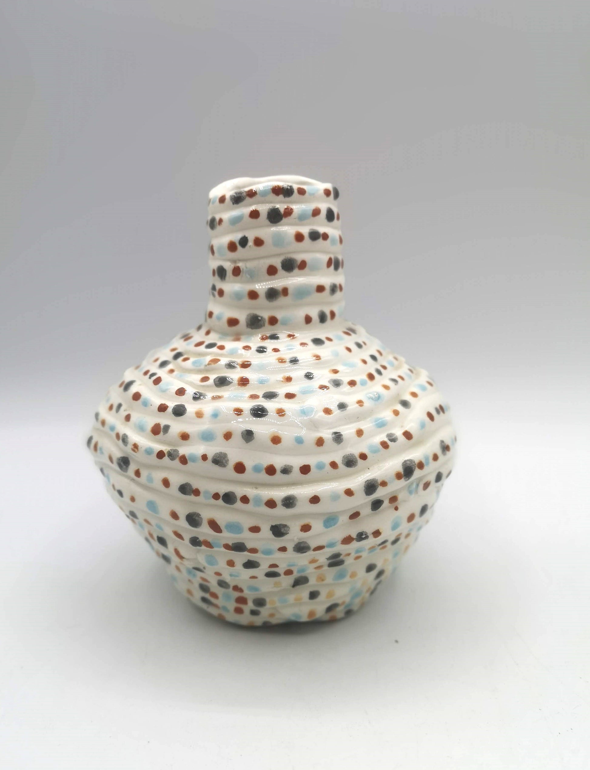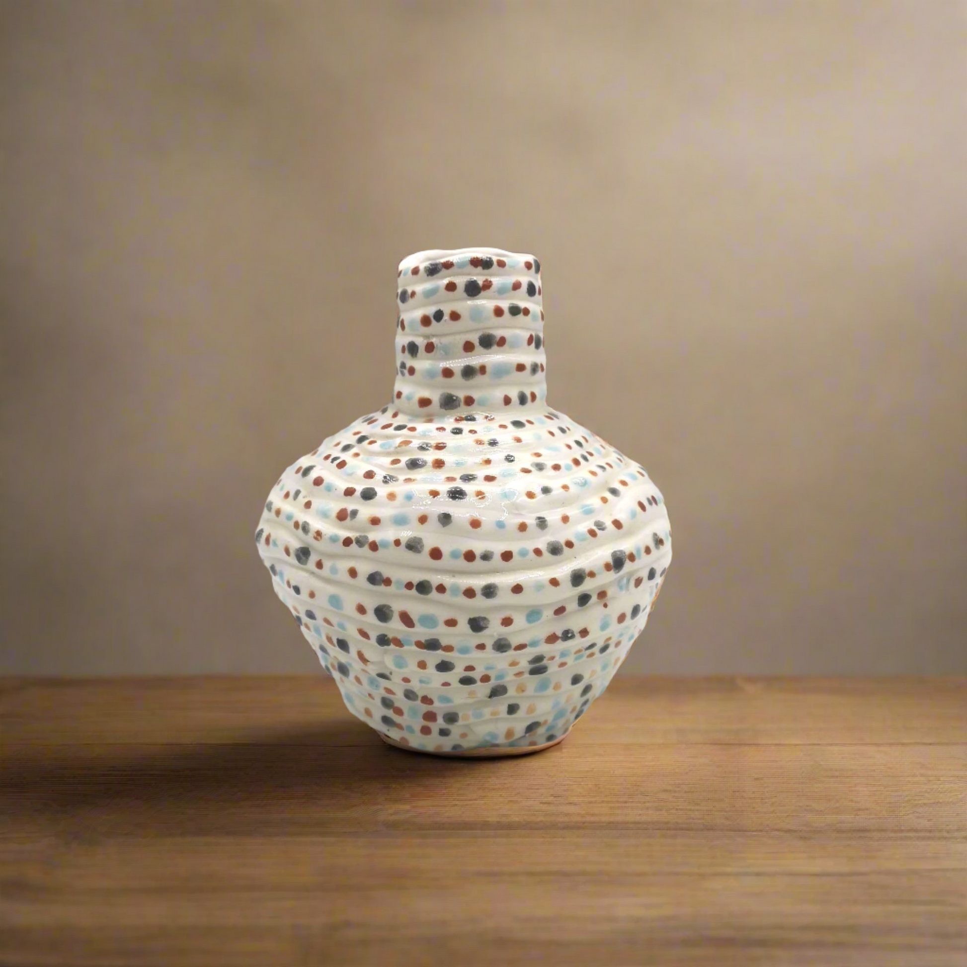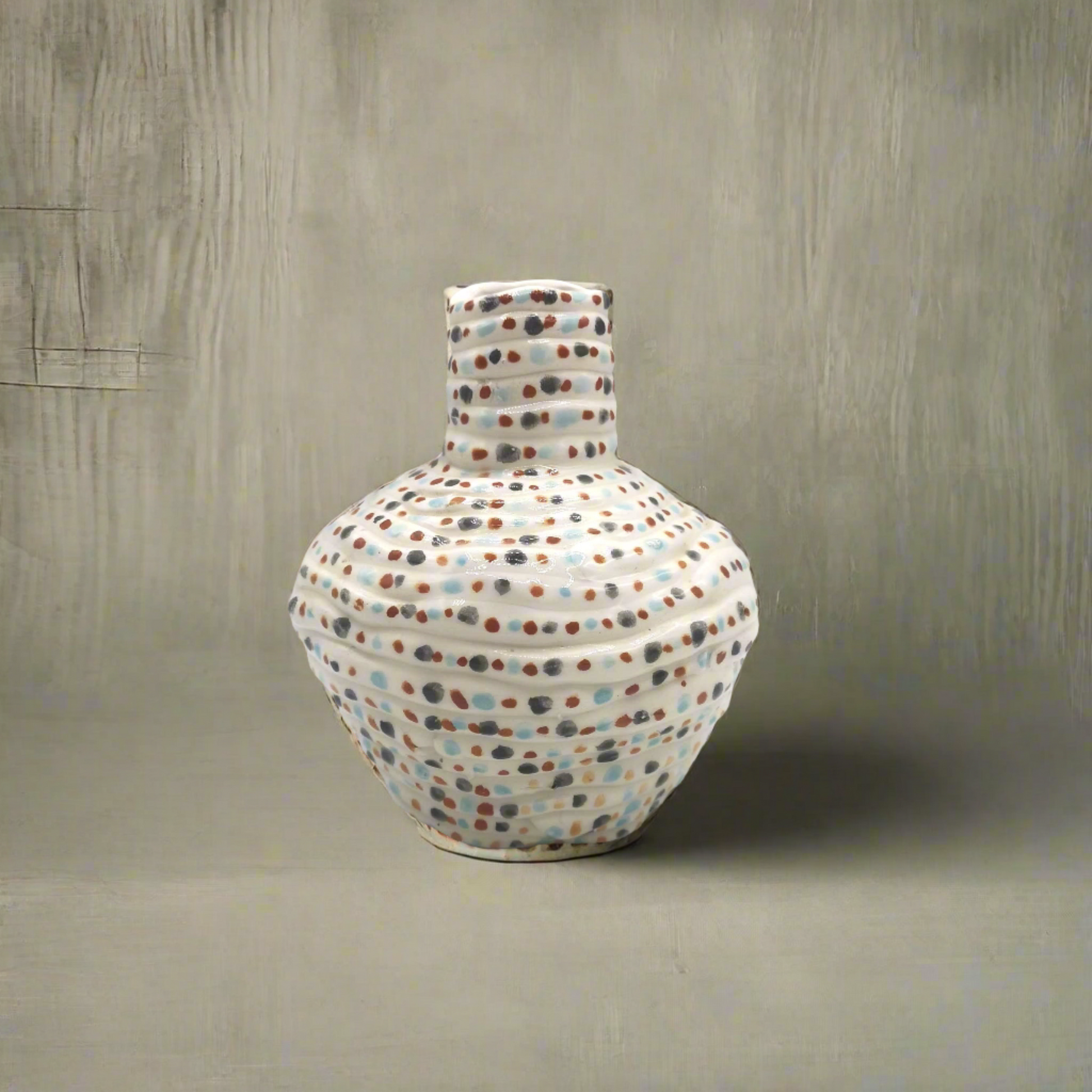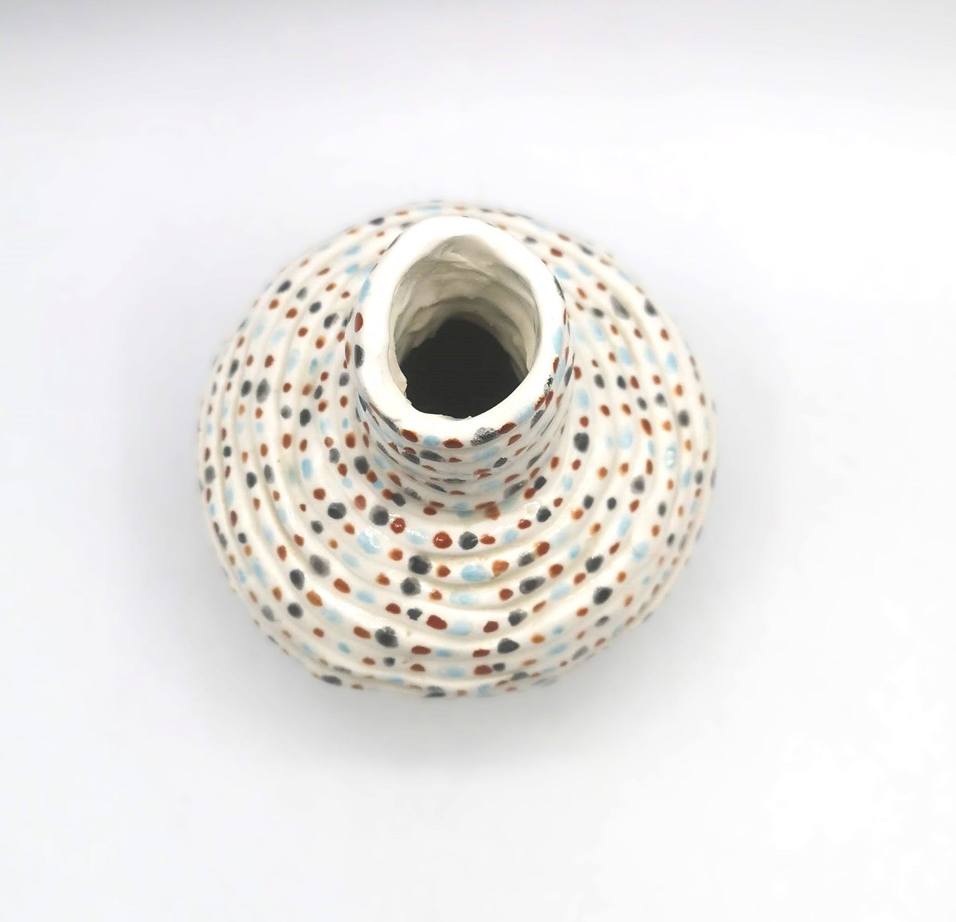 Handmade White Ceramic Vase with Colorful Handpainted Spots – Eclectic Decorative Vase for Home & Garden – Unique Gift Idea – 15cm x 12cm