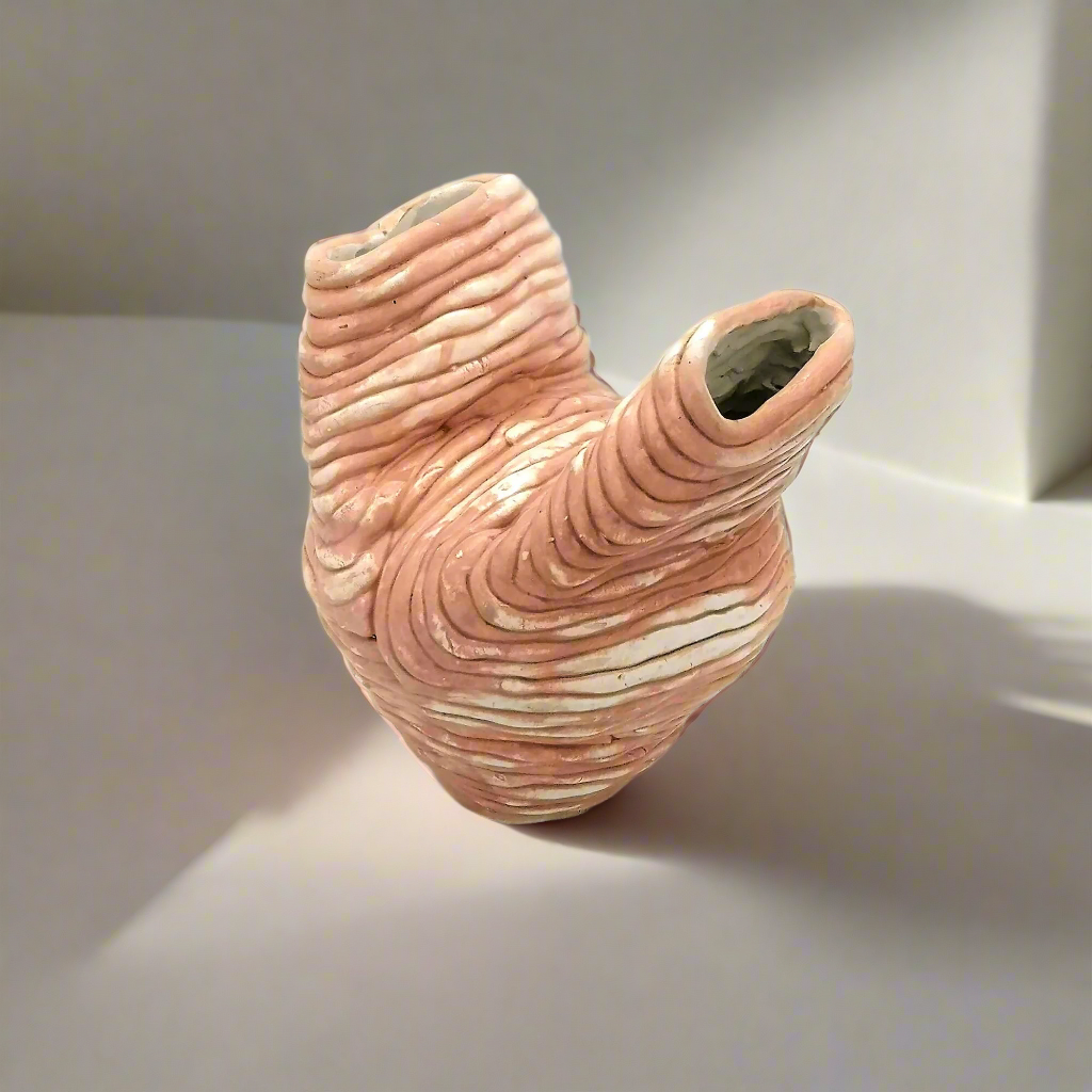 Sculptural Handmade Ceramic Pink Vase – Textured Organic Bud Vase