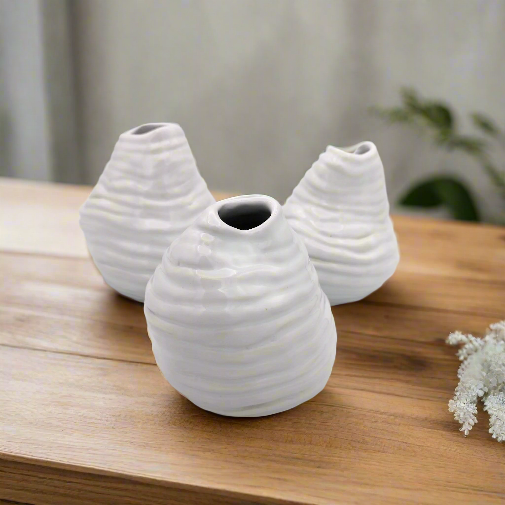 Set of 3 Handmade White Ceramic Vases | Irregular Shaped Pottery Sculpture | Abstract Ceramic Vessel for Home Decor | Unique Gift for Mom, Anniversary, or Birthday