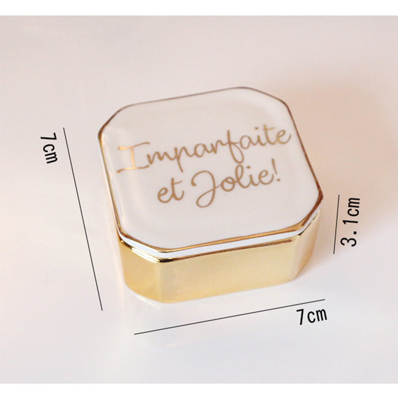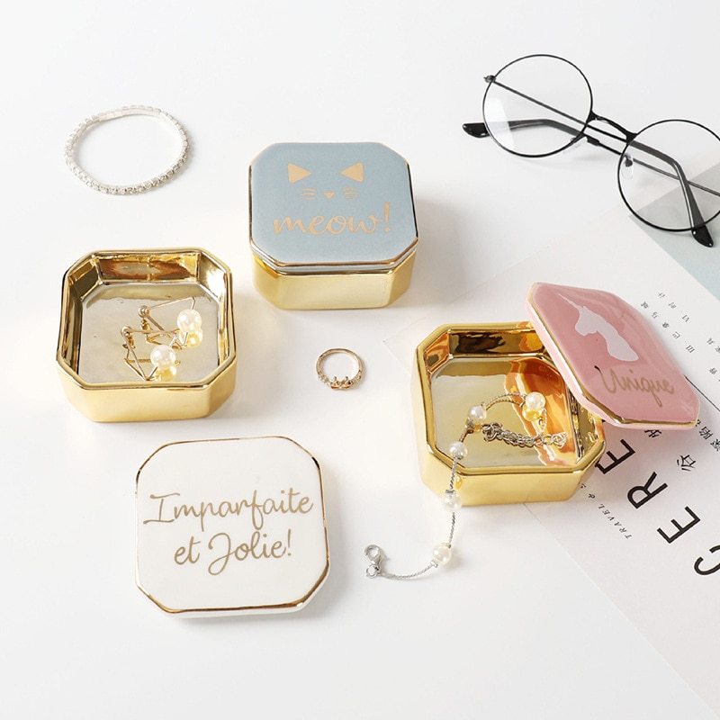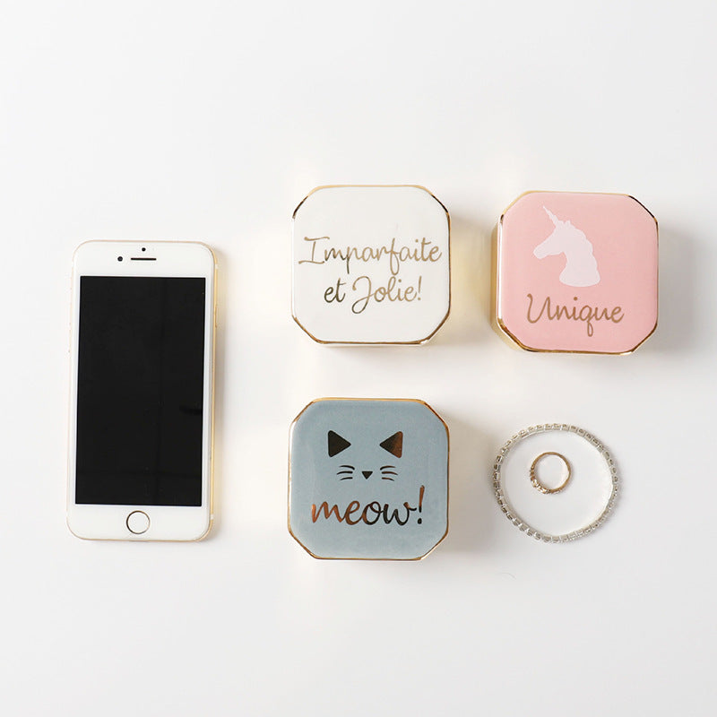 Square Ceramic Jewelry Box | 7x7cm Gift Box | Cat, Unicorn, Golden Lid