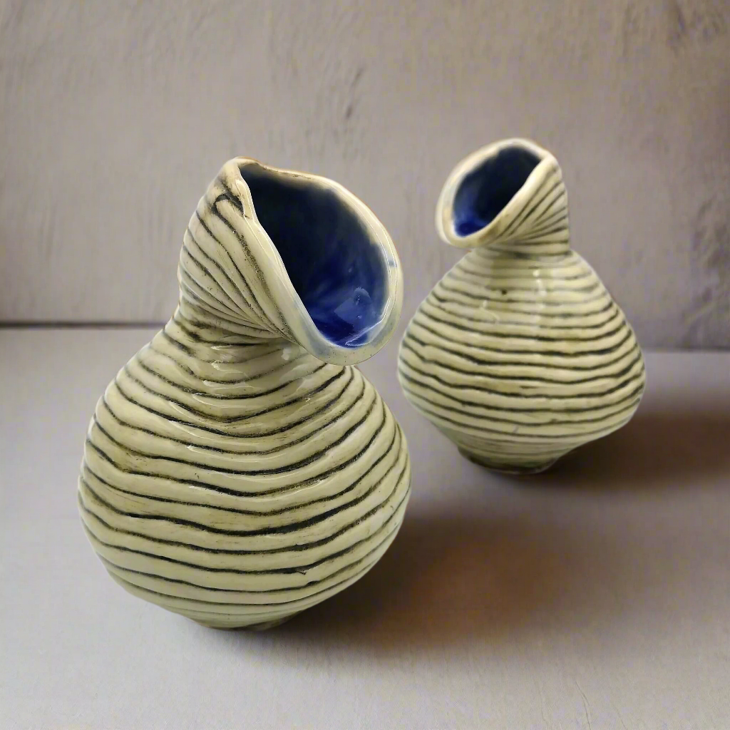 🌿 Elevate your decor with this textured ceramic bud vase, a rustic yet modern piece of handmade stoneware pottery. Featuring a beige exterior and a blue-glazed interior, this mid-century modern vase adds a unique accent to your home. Perfect as a flower vase, wedding gift, or artistic display.