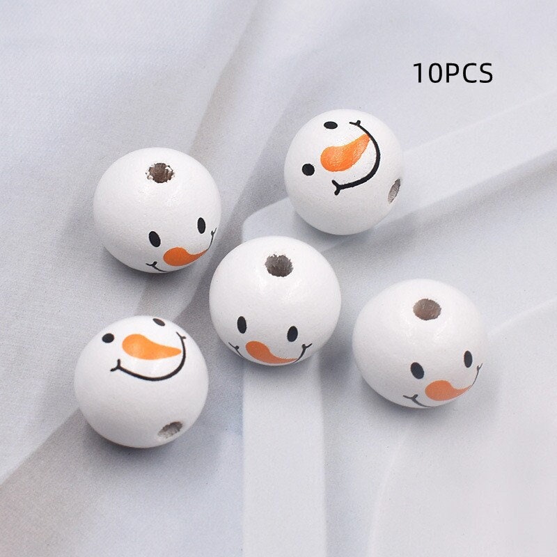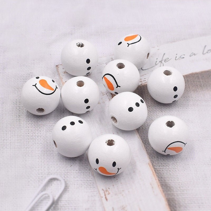 1/10/20/50Pcs 20MM White Printed Wooden Beads - Christmas Snowman Macrame Beads, Large Hole for Jewelry Making